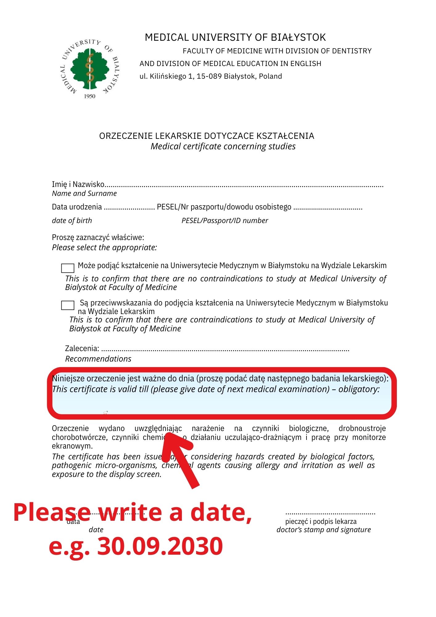 During the entrance exam candidate’s knowledge will be evaluated in the following fields of study: biology or chemistry or physics or maths as per candidate’s choice.